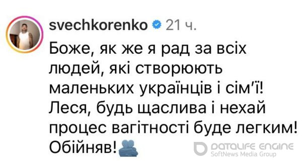 «Боже, як же я радий за всіх людей, які створюють маленьких українців і сімʼї! Леся, будь щаслива і нехай процес вагітності буде легким!» — написали у мережі.