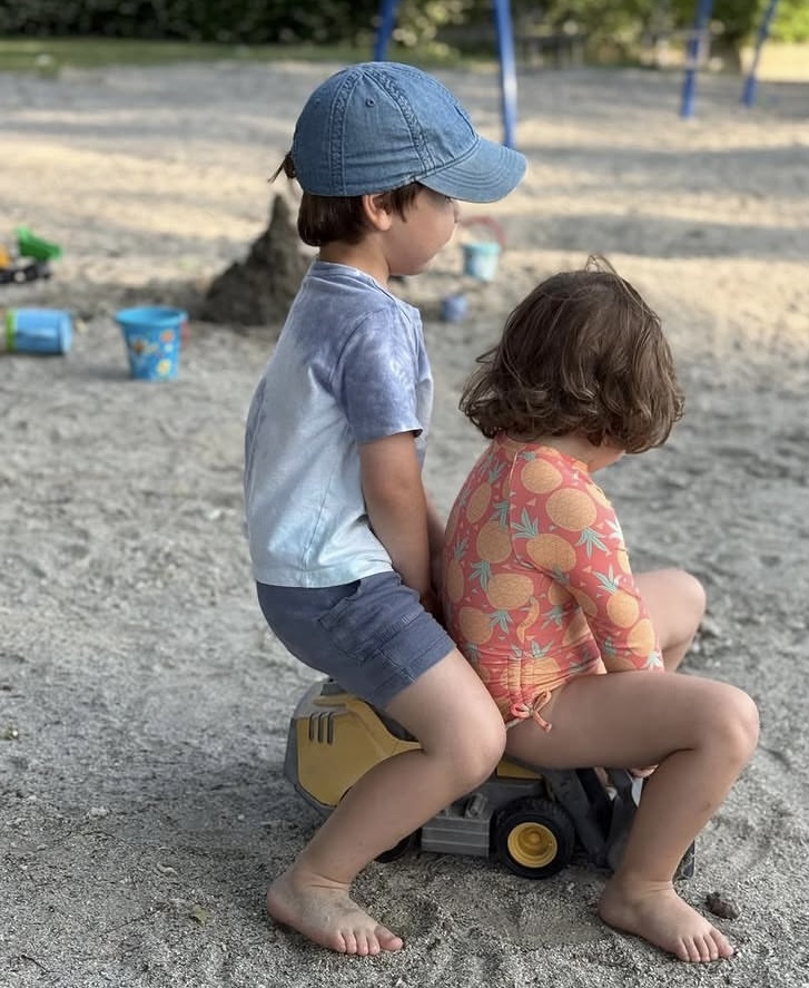 На своїй сторінці у соціальній мережі Вакарчук виклав фото обох дітей, які граються на березі моря.