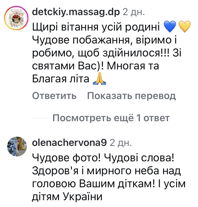«Чудове фото! - написали у коментарях. — Чудові слова! Здоров'я і мирного неба над головою Вашим діткам! І усім дітям України».