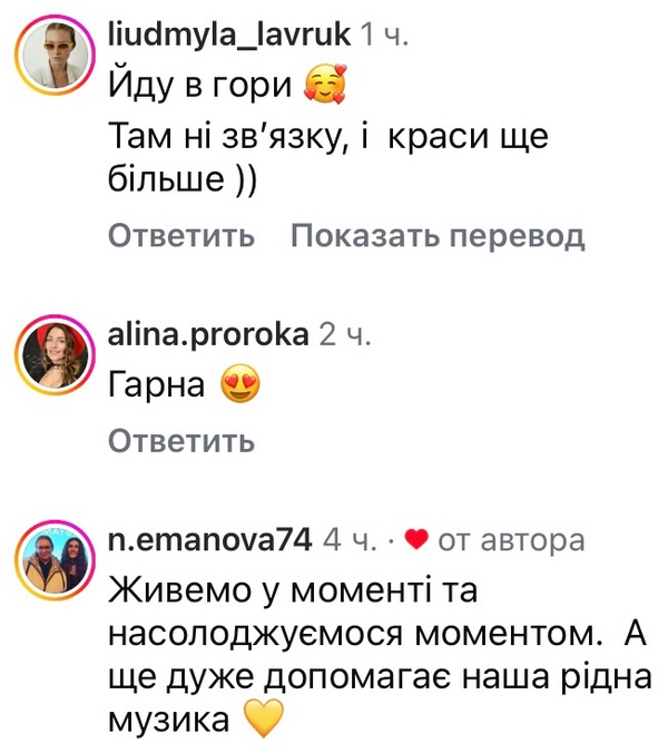 «Живемо у моменті та насолоджуємося моментом, — написали у відповідь. - А ще дуже допомагає наша рідна музика».