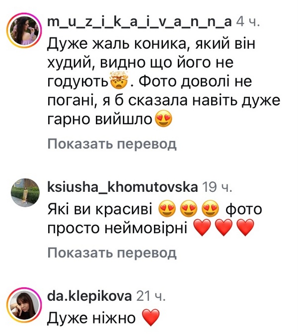 «Дуже жаль коника, який він худий, видно, що його не годують, — вирішили підписники. — Фото доволі непогані, я б сказала, навіть дуже гарно вийшло».