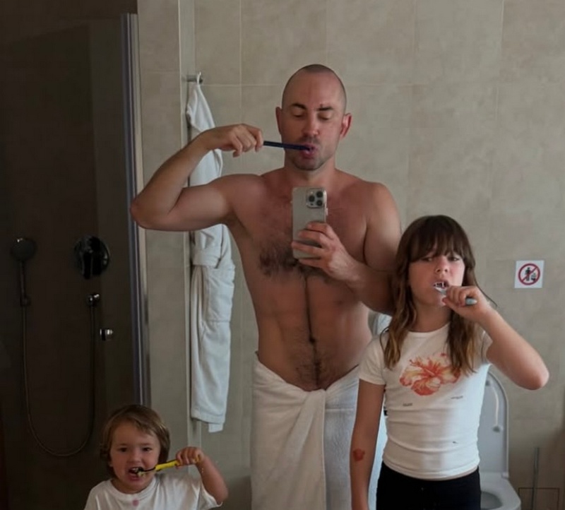 На своїй сторінці у соціальній мережі Андрій виклав світлини з дітьми під час купання та прогулянок містом.