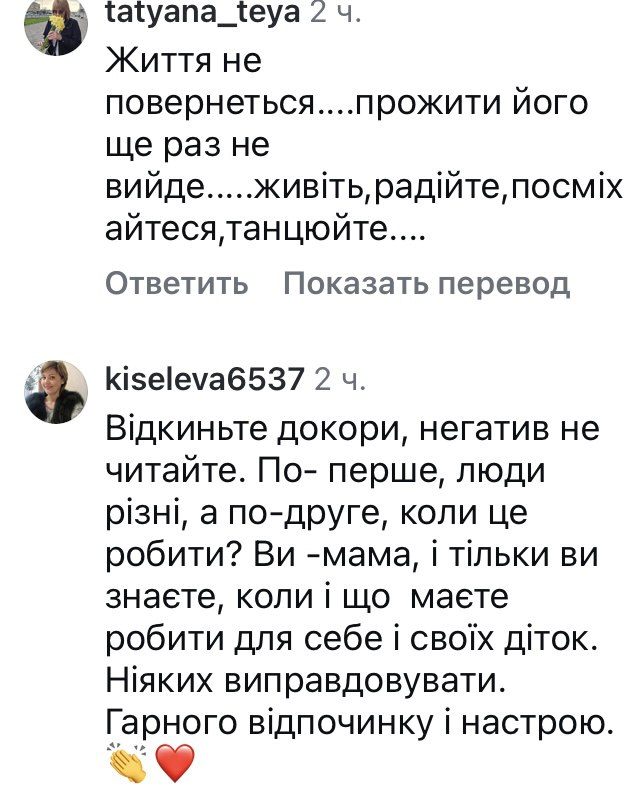 Підписники підтримали Лілію, поділилися думками, але були і ті, хто докорив її чоловіка — танцюриста Андрія Дикого, який відпочиває разом з сімʼєю.