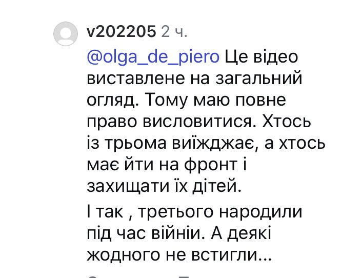 - Це відео виставлене на загальний огляд, — висловилися у мережі. — Тому маю повне право висловитися. Хтось із трьома виїжджає, а хтось має йти на фронт і захищати їх дітей.
