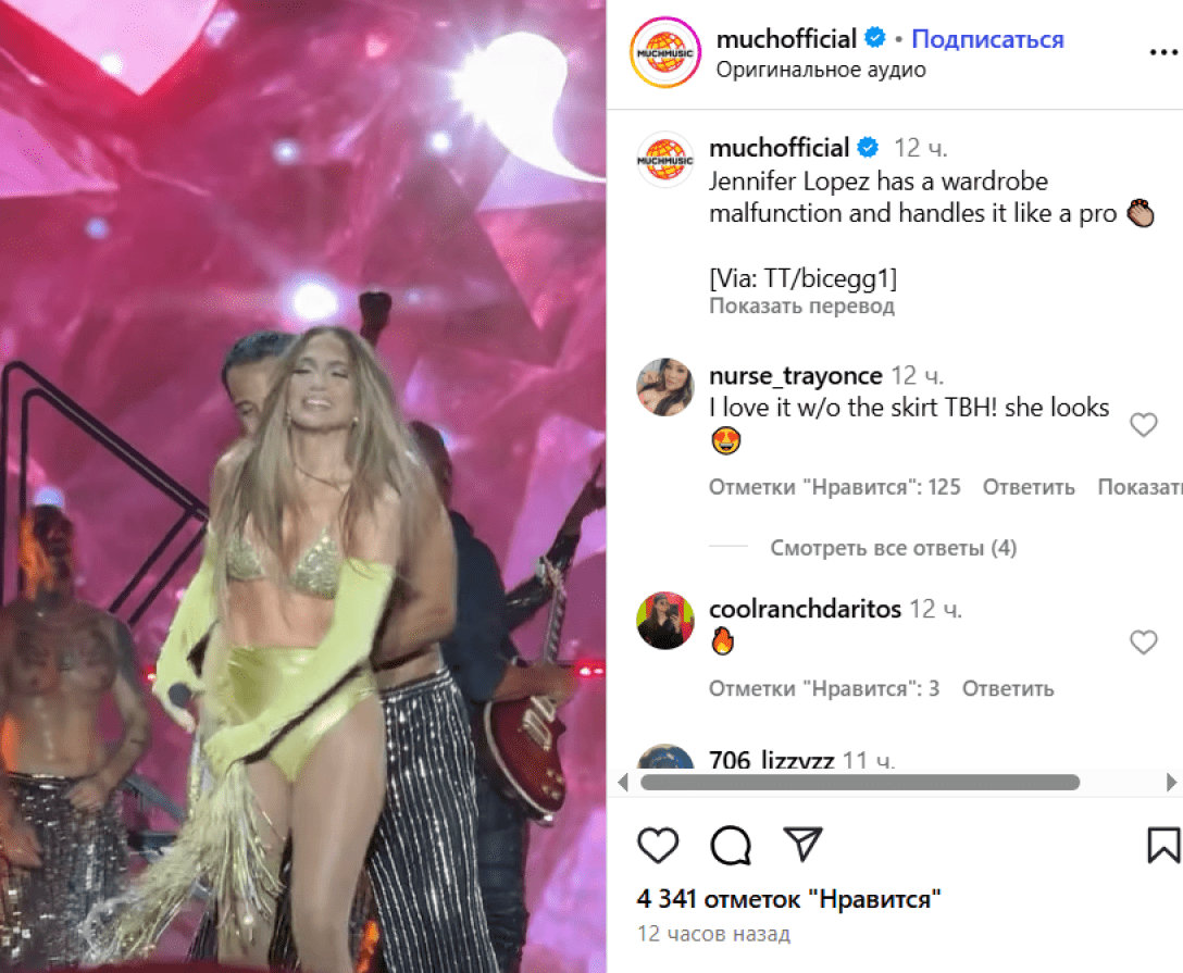 «Дякую, Варшаво! — крикнула Лопес до публіки в момент, коли застібка її спідниці несподівано порвалася. — О! Я тут у спідній білизні».