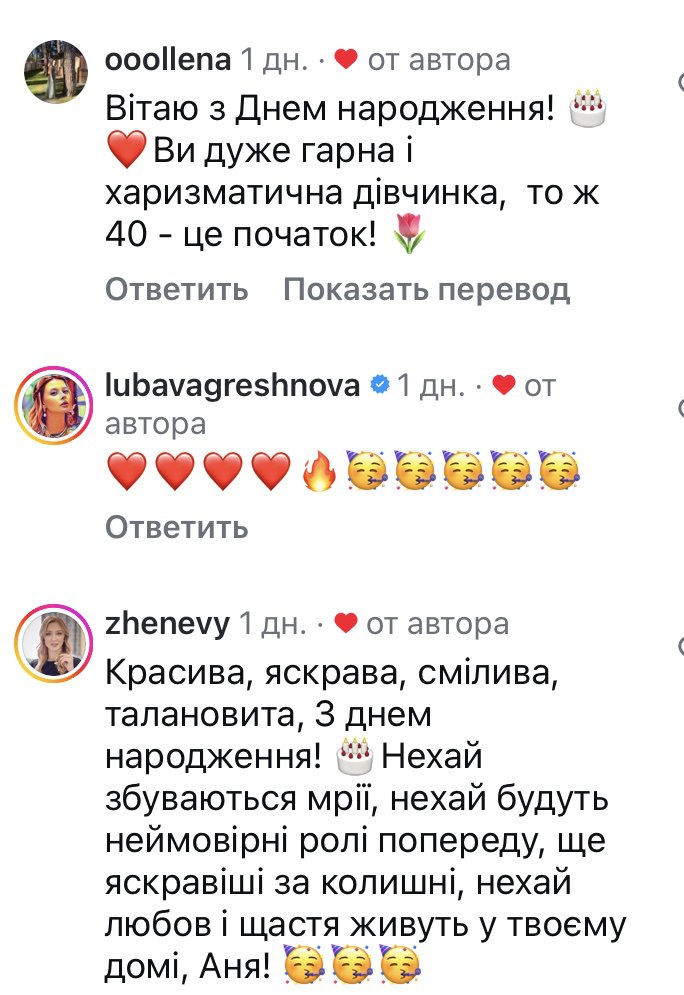 - Привіт мої шикарні 40! — написала Анна. — І так, я не боюсь віку, бо вважаю, що в мене прекрасне життя, наскільки воно може бути у нас в Україні. Я шикарно виглядаю, в мене прекрасні сини, чудова родина, улюблена робота! І тільки до 40, я зрозуміла, що треба любити себе і що треба жити, як хочу я, а не, як хоче оточення.