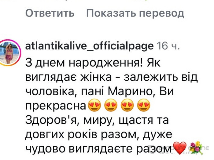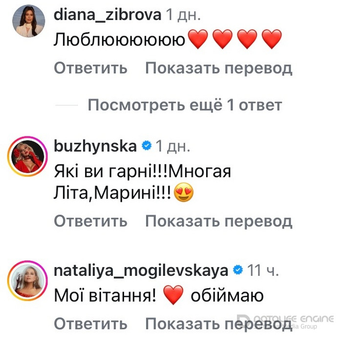 «Які ви гарні! — поділилася співачка Катерина Бужинська. — Многая літа Марині!»РЕКЛАМА