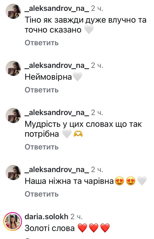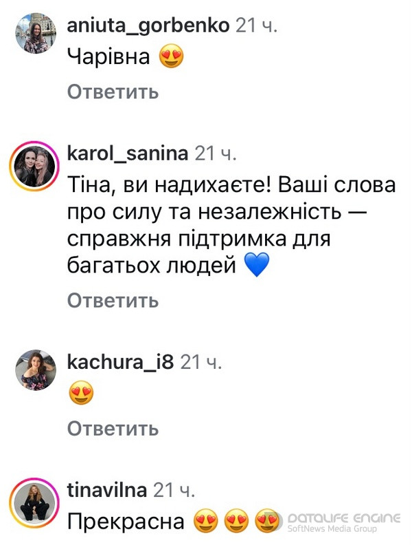 «Слова, які так були потрібні, Тіно, ви, як завжди, в саме серце і дуже влучно», — написали у коментарях.