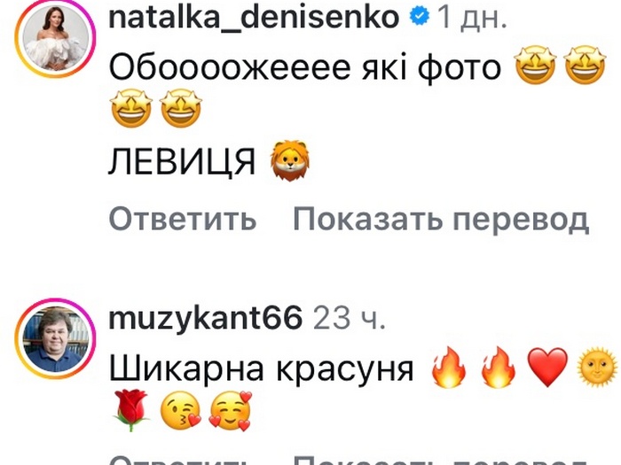 «О боооожееее, які фото, — відреагувала на світлини акторка Наталка Денисенко. — Левиця».РЕКЛАМА