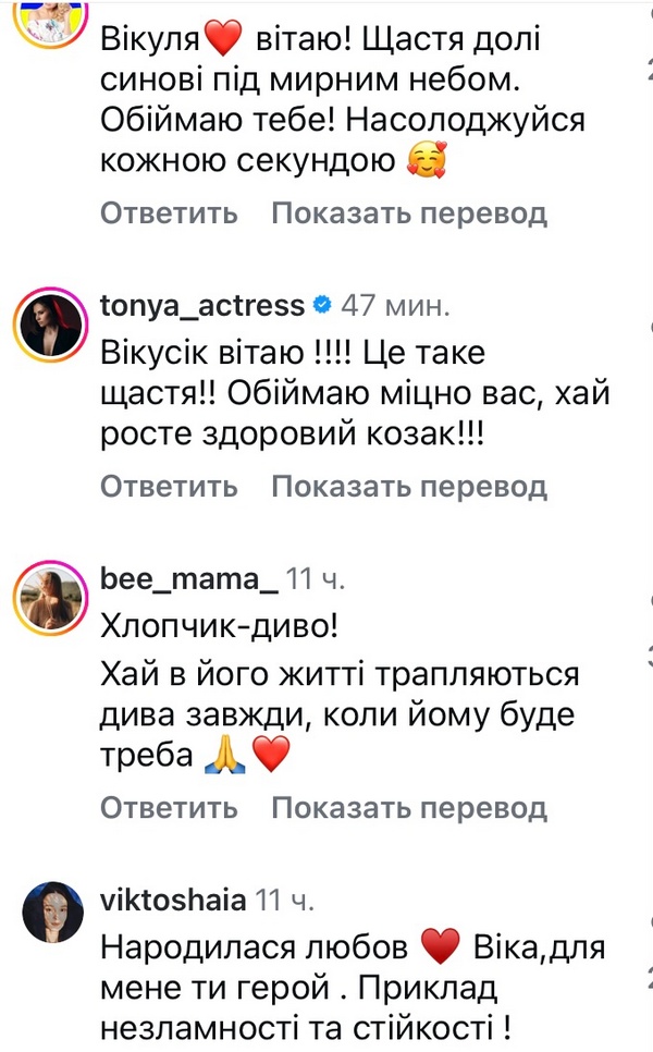 «Вікуля, вітаю! — привітала під дописом Лілія Ребрик. — Щастя, долі синові під мирним небом. Обіймаю тебе! Насолоджуйся кожною секундою».РЕКЛАМА