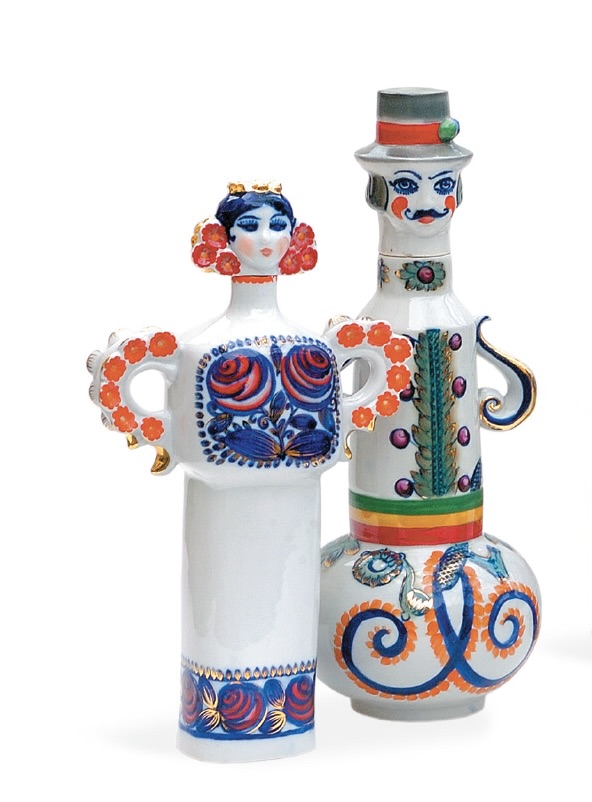 — Так. У них втілено гармонію пластики та настрою. Ось, наприклад, штофи «Марічка» й «Іванко» Валентини й Миколи Трегубових. Це порцелянова пара, у якій втілено настрій українського свята, в ній — поєднання декоративної експресії та поетики народного мистецтва. Обидві постаті сповнені життєрадісності та барвистої енергії, що перегукується з мотивами весільного дійства або народного ярмарку. Художники використали надглазурний розпис із кобальтовими, помаранчевими, зеленими й золотими акцентами, створивши ефект святкового сяйва. У цих роботах митців цікаво розглядати кожну деталь. Милуватися цими творами мистецтва можна нескінченно.