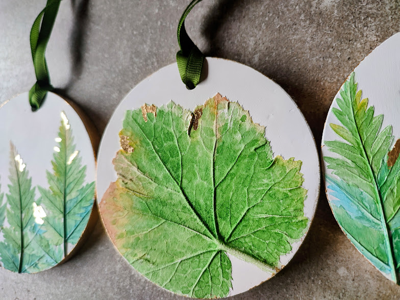 Деякі роботи тонуються ще на етапі створення — вони одразу відливаються з тонованого в масі гіпсу, деякі розписуються аквареллю, поки гіпс мокрий, або акрилом, коли гіпс сухий. Кожен дизайн цікавий. Ось мініатюри з листям. Вони — про час і історію, про те, що досвід може перетворити все на тлін, а може стати позолотою. Я прагнула уникнути «гламурної» ідеальної зелені й тому додала життя через теплі медові відтінки.