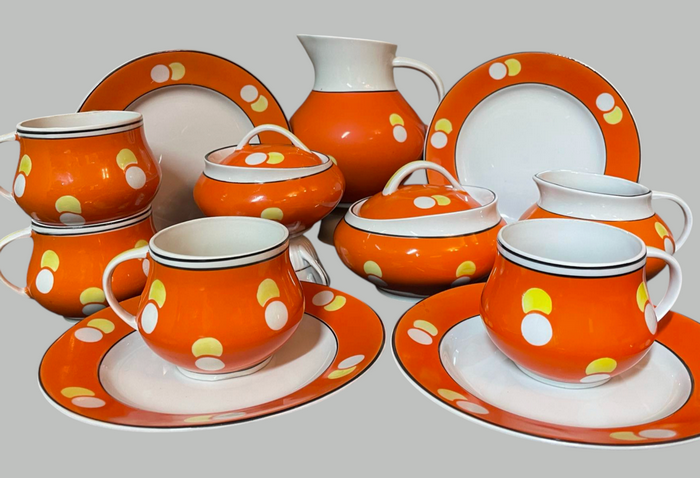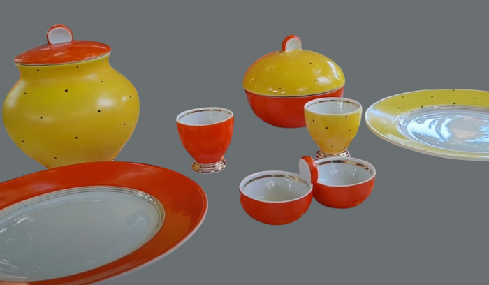 - Кілька чудових сетів для сніданку було створено у 1960−70 роки, — розповідає Людмила Карпінська-Романюк. — Ось перед нами — веселий, життєрадісний набір для сніданку на двох, створений на Довбиському заводі. Його кольорова гама — тепла, як літній ранок. Насичені помаранчевий і сонячно-жовтий підкреслені блиском білої глазурі. Ці відтінки створюють відчуття ранкового тепла, сонячного світла й затишку. М’які, округлі форми посуду нагадують стиглі фрукти.ВІДЕО ДНЯ
