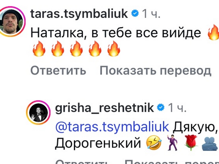«Наталка, у тебе все вийде», — підтримав подругу актор Тарас Цимбалюк.