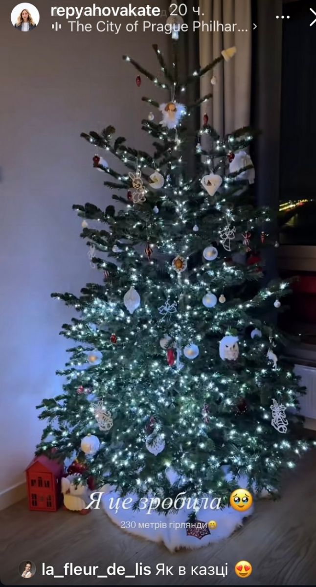 Дружина відомого співака Віктора Павліка, блогерка Катерина Репʼяхова, яка вкотре лягла під ніж хірурга, вразила мережу. На своїй сторінці у соціальному додатку вона показала приготування до святкування Різдва. В домі Катерини вже стоїть новорічна ялинка, яку вона прикрасила 230-ти метровою гірляндою. Блогерка показала сяючу красуню, та додала, що нарешті «це зробила».ВІДЕО ДНЯ