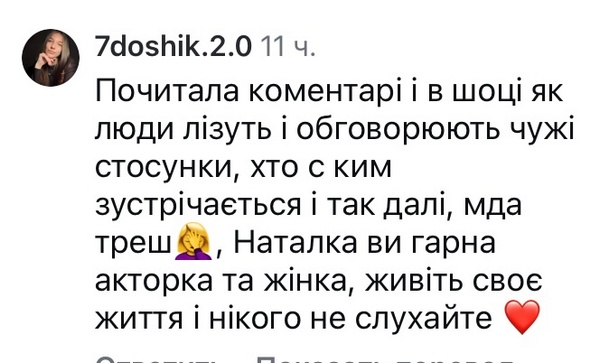 Наталка написала, що бачить кожен коментар і не хоче вдавати з себе «жертву».