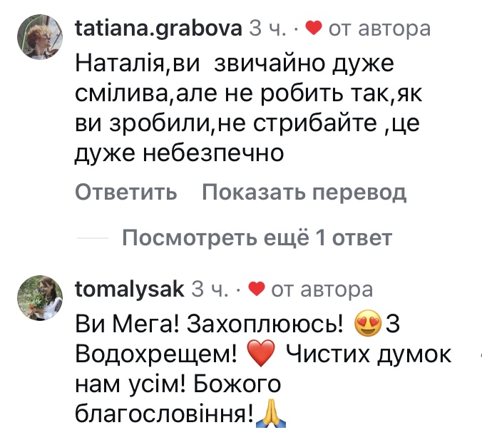 «Наталія, це сміливо, але такий стрибок небезпечний», — написали у коментарях.