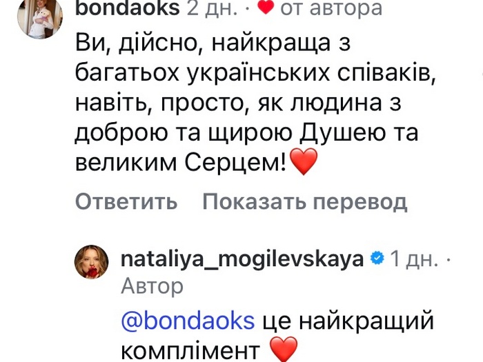 «Це найкращий комплімент», — відреагувала Могилевська.
