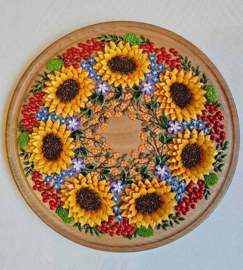 — Щоб займатися флоромозаїкою, потрібне велике терпіння. І це, на мою думку, є найскладнішим для багатьох, хто починає працювати в цій техніці. Під час очищення насіння може ламатися, тріскатися, втрачати форму, тому дуже важливо робити все обережно й акуратно.