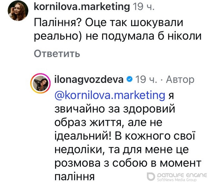«Паління? — перепитали Ілону у коментарях. — Оце так шокували реально, не подумала б ніколи».