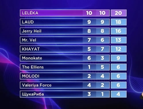 Першими оголосили результати голосування журі. Найнижчий бал вони поставили гурту «The Elliens». Найвищий — співачці Лелека (Leleka). Фаворит глядацького опитування KHAYAT отримав пʼять балів від журі, та сім від глядачів. Не вистачило балів для перемоги і Джеррі Хейл — у загальному підсумку вона посіла третє місце після Laud.