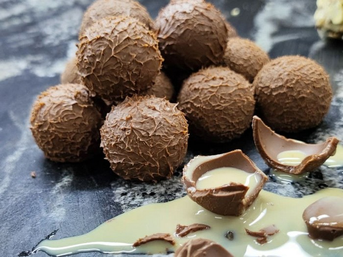 Сформувати цукерки, покрити розтопленим шоколадом й посипати какао.