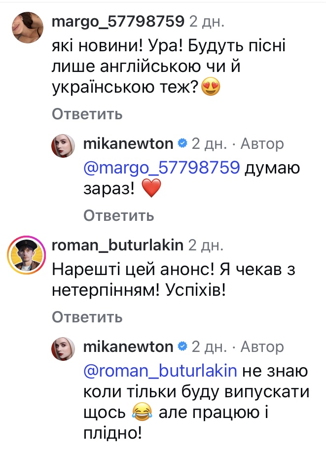Популярна співачка, зірка середини 2000-х Міка Ньютон оголосила про повернення на сцену. На своїй сторінці у соціальній мережі артистка повідомила, що зараз працює над новим альбомом і він буде відображенням її почуттів за останній час. Нагадаємо, співачка вже з 2011 року живе в Америці, де будувала карʼєру акторки та вийшла заміж за американського продюсера.ВІДЕО ДНЯ