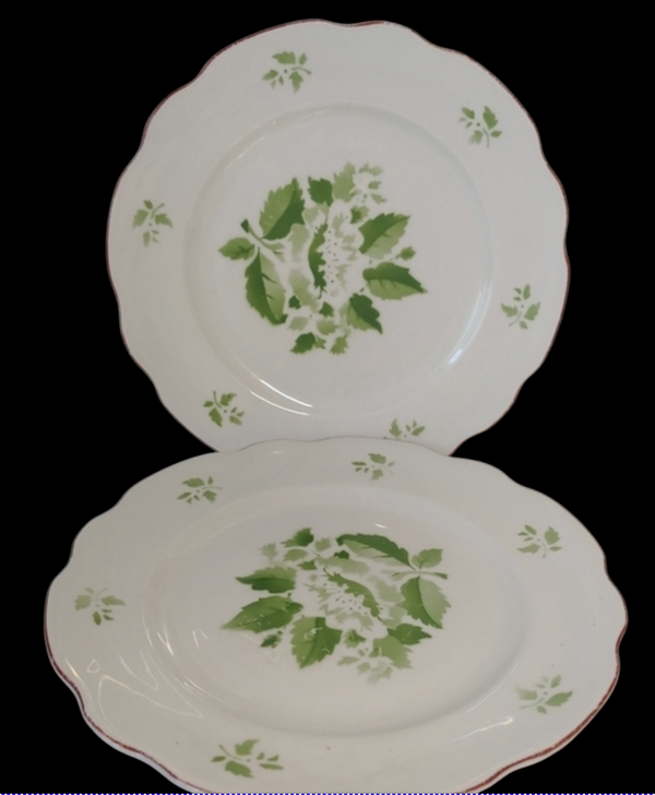 Молочно-біле тло фарфору тепле, трохи вершкове, не холодне — воно сприймається як тиха основа, на якій розквітає зелень. У центрі — рослинний мотив, зібраний у вінок із листя: не декоративно-урочистий, а живий, ніби зірваний просто з куща. Зелені тони різні за насиченістю — від світлої, майже прозорої зелені до глибших, соковитих відтінків. Це створює відчуття руху та дихання.