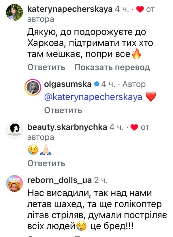 «Друзі, хто ще не потрапляв під час тривоги на евакуацію, беріть теплі речі і їжу! - написала Ольга. — Тим більше, якщо у вас малі діточки! Евакуація може бути і вдень, і вночі також! Дякуємо нашим залізничникам!»