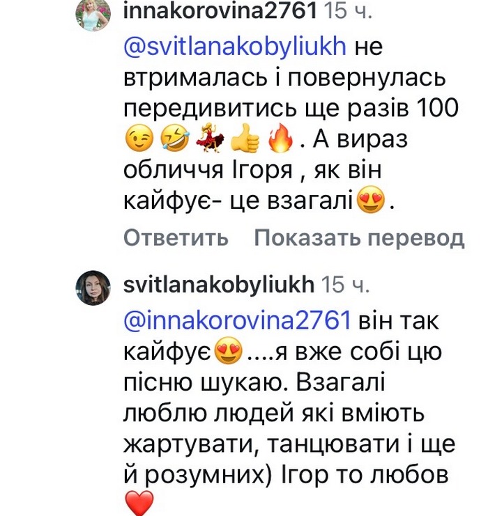 «Не втрималася і повернулася передивитись ще разів 100, — підтримали у коментарях. — А вираз обличчя Ігоря, як він кайфує — це взагалі».