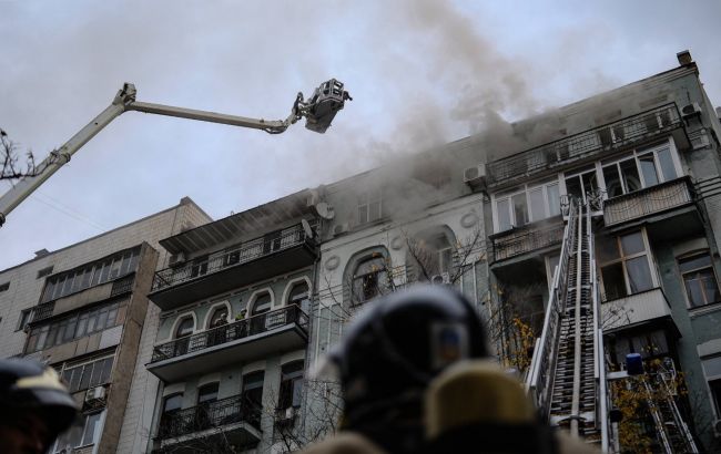 В центре Киева с вечера горит многоэтажка: фото и видео..