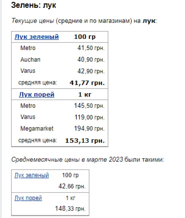 Ціни на зелену цибулю. Фото: скрін Мінфін