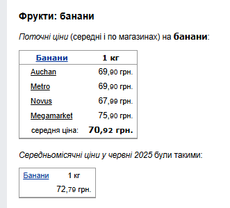alt="Ціни на банани. Фото: скрін Мінфін"