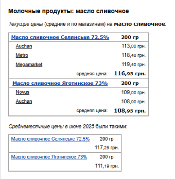 alt="Ціни на масло. Фото: скрін Мінфін"