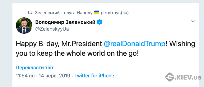 Президент Украины Владимир Зеленский поздравил с днем рождения своего американского коллегу – президента США Дональда Трампа.
