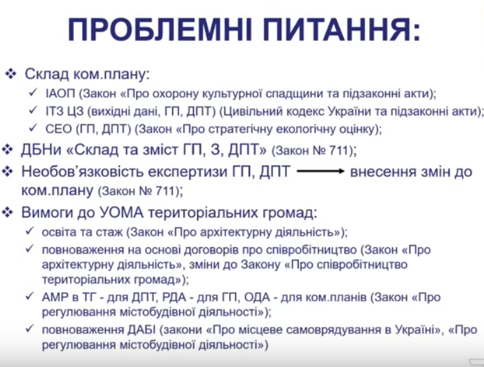 Містобудівного кодексу; відсутність фінансування, відсутність наявної вихідної