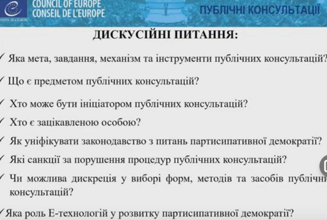 публічних консультацій в Україні, які найближчим часом планується обговорити на