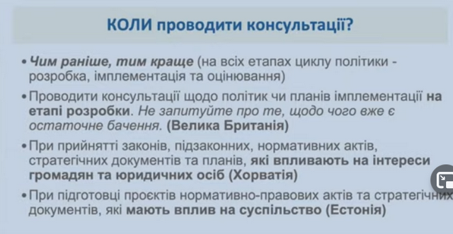 публічних консультацій в Україні з метою його вдосконалення при підготовці до
