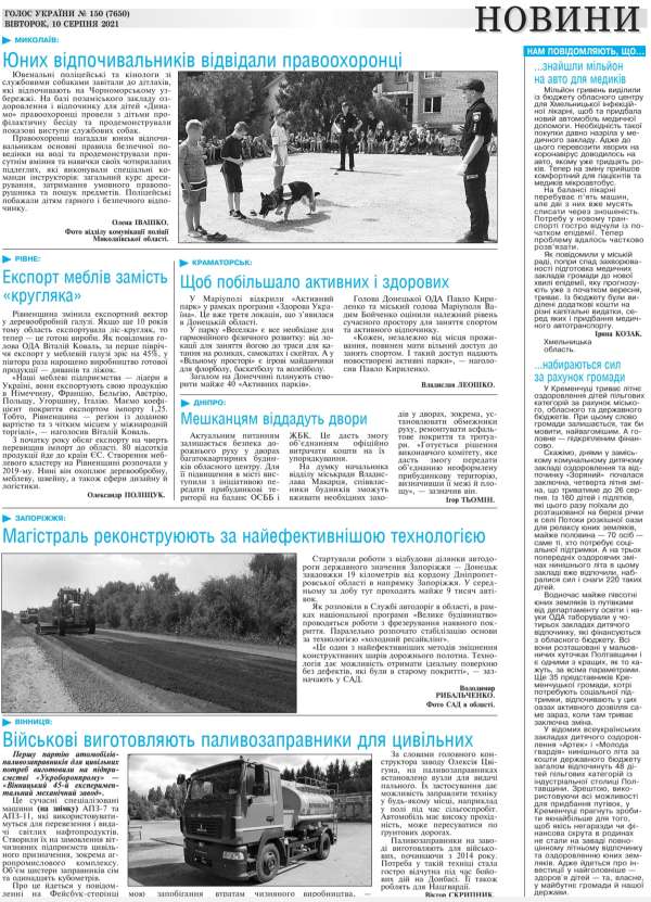 України», № 150 (7650), вівторок, 10 серпня 2021 року: WWW.GOLOS.COM.UA