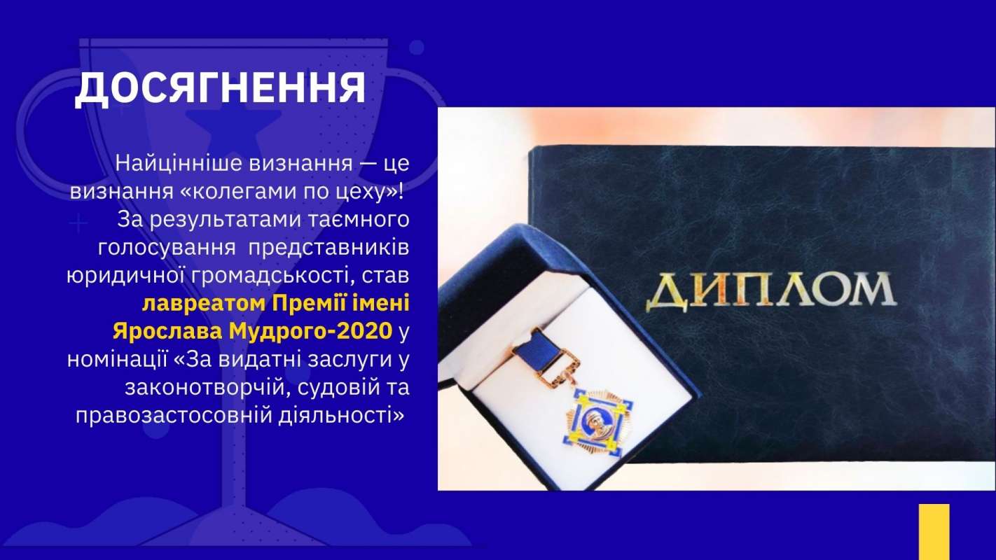 представників юридичної громадськості, став лавреатом Премії імені Ярослава