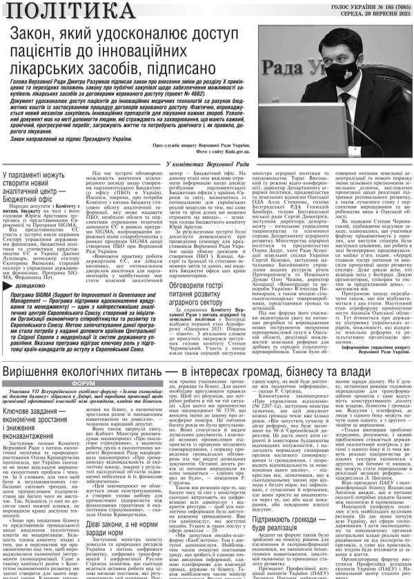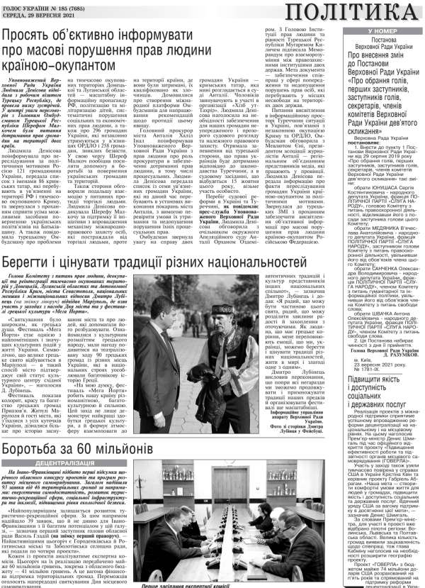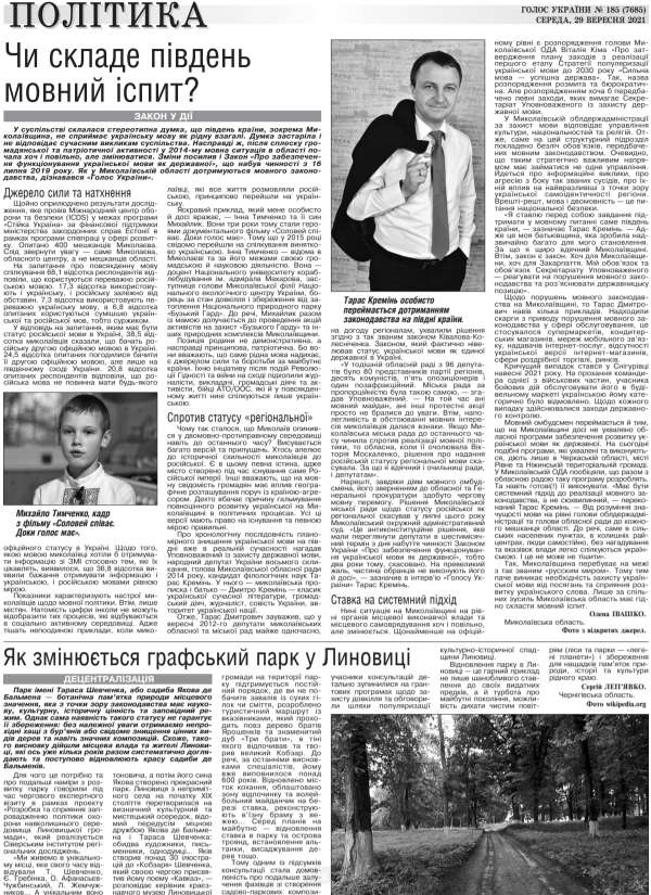Повністю «Голос України», № 185 (7685), від 29 вересня