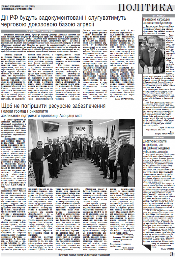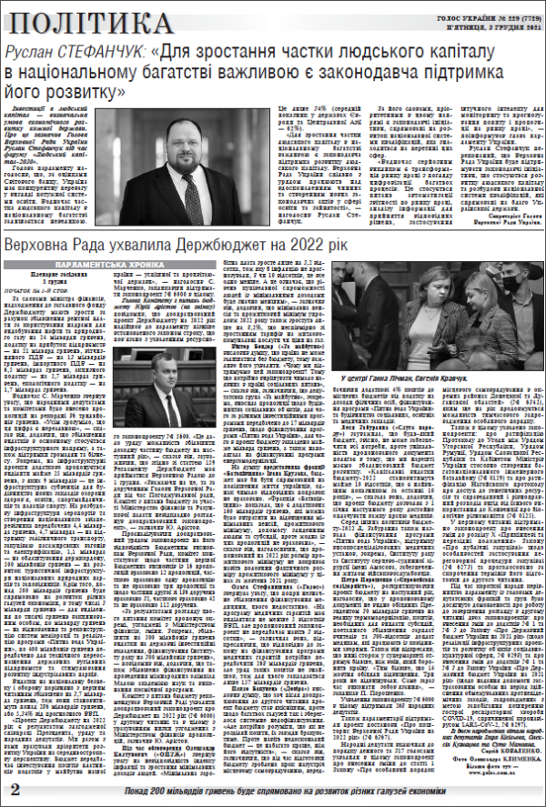 Огляд головних тем «Голосу України» від 3 грудня
