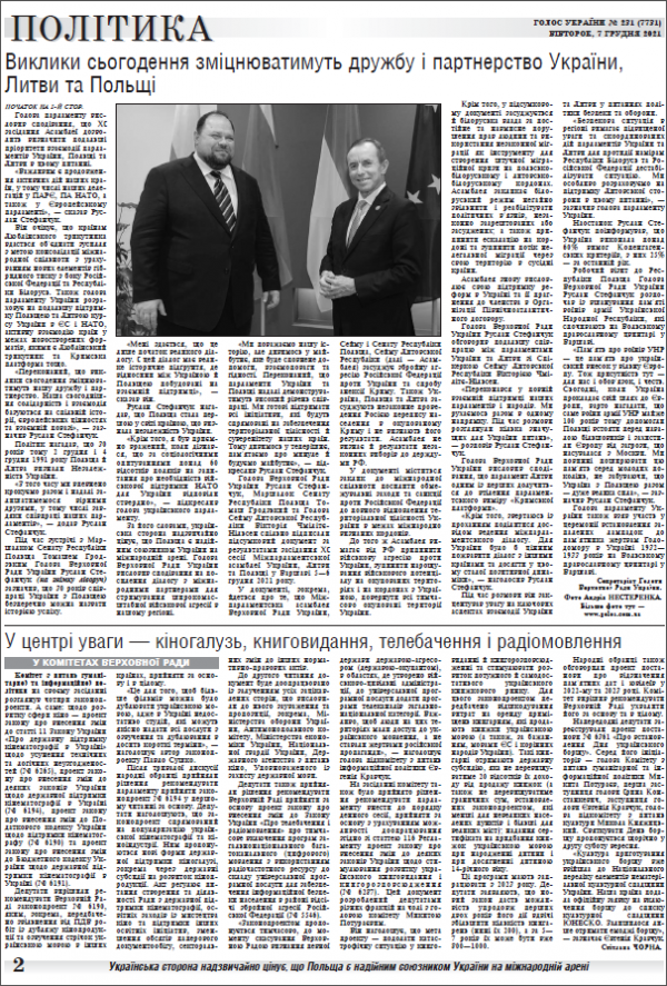 Польща та Сеймасу Литовської Республіки. (читайте у «Голосі України» на 1-2 стор.