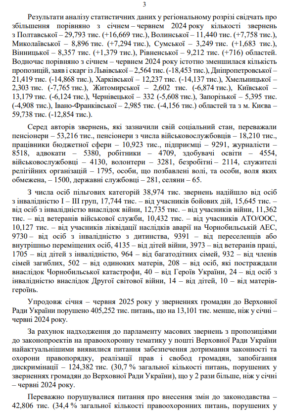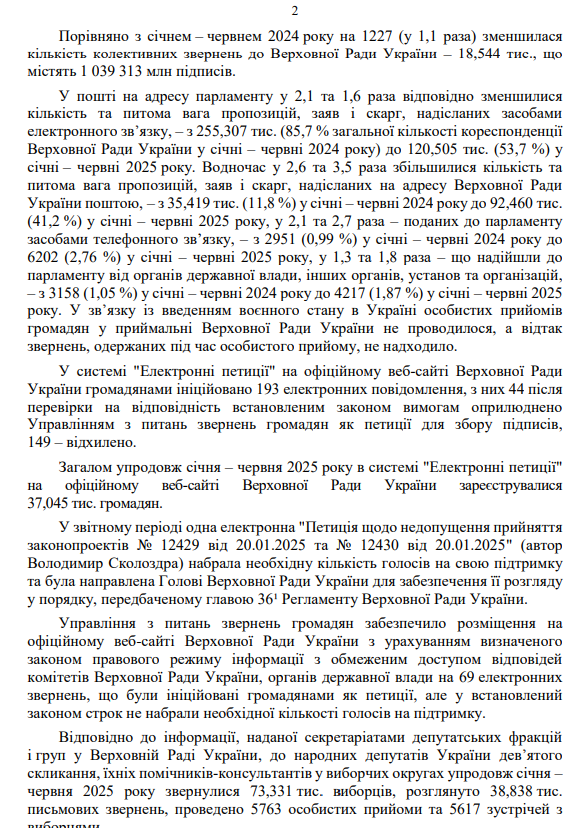 Про звернення громадян до Верховної Ради України у січні - червні 2025 року
