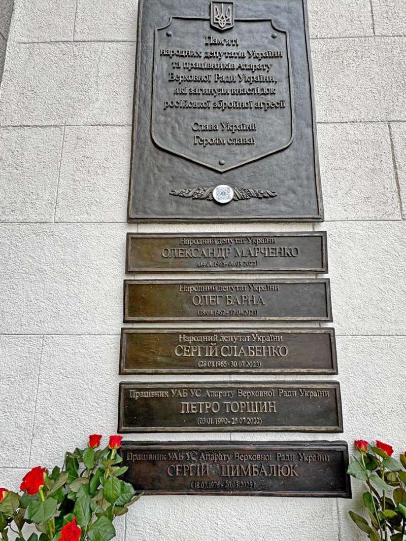 дошки на будівлі Верховної Ради України — на честь загиблих народних депутатів
