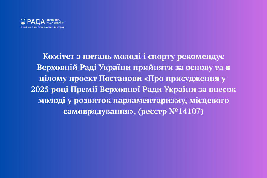 Комітет з питань молоді і спорту підготував пропозиції щодо..
