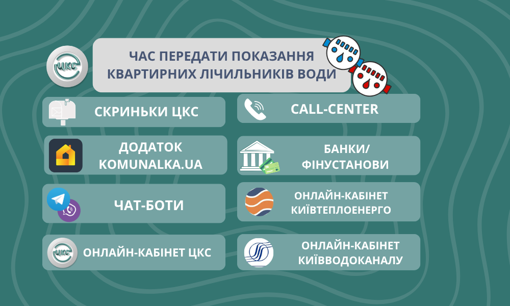 Киевляне могут выбрать наиболее удобный способ передачи показаний, предлагаемых ЦКС. Так, в июле 2025 более 370 тысяч показаний квартирных счетчиков горячей и холодной воды киевляне передали с помощью личного онлайн-кабинета, а также чат-ботов Viber и Telegram.