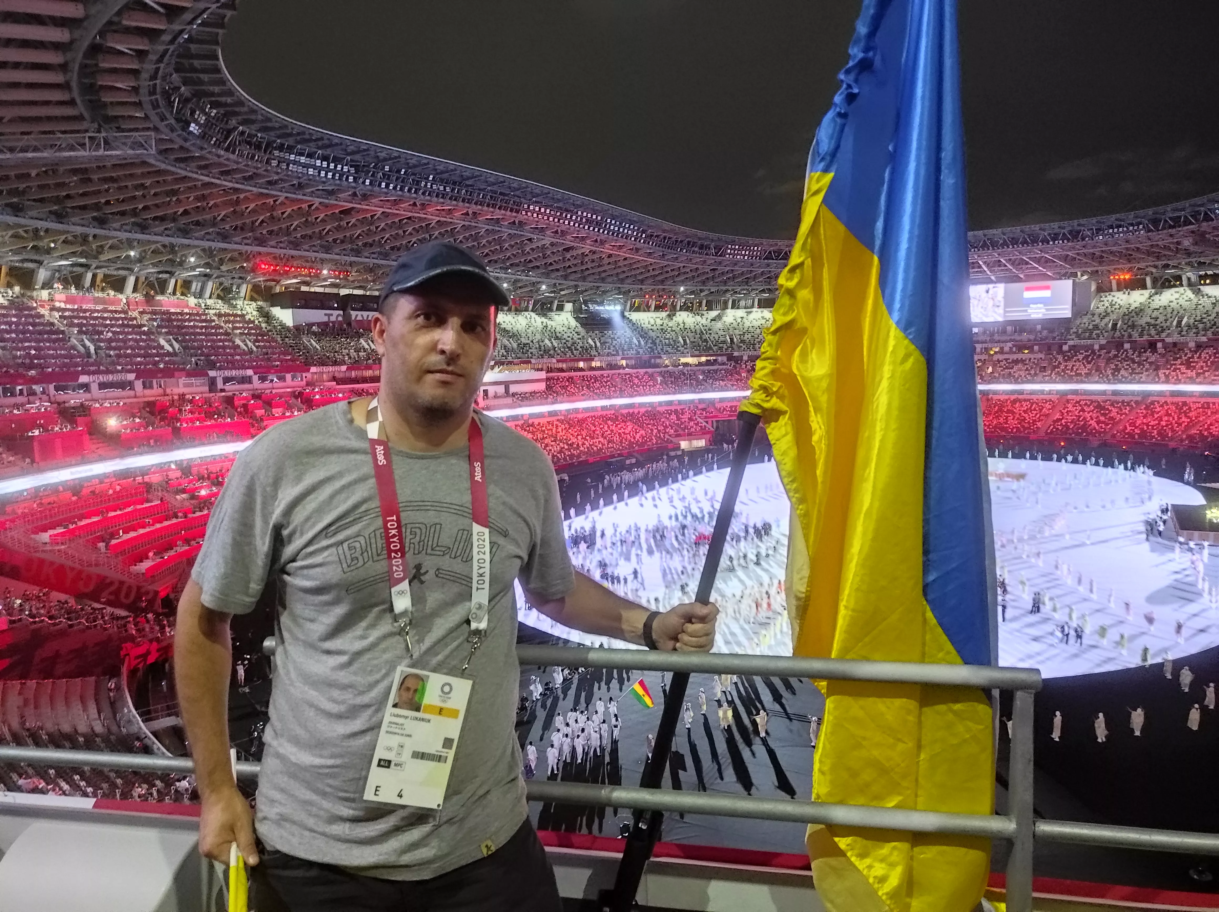 Но даже при пустых трибунах сборная Украины не осталась без поддержки!Мы с коллегой на время переквалифицировались из журналистов в болельщиков и вооружившись тремя флагами, достойно встретили наших спортсменов на параде.