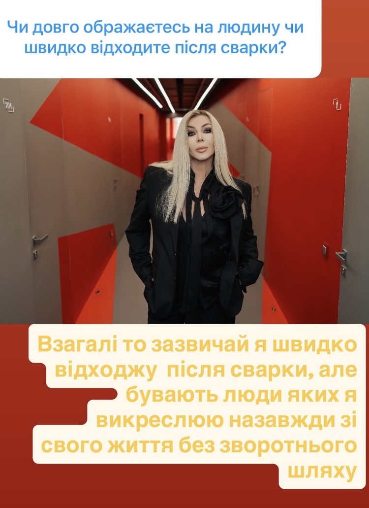 «Взагалі-то зазвичай я швидко відхожу після сварки, — зізналася артистка. - Але бувають люди, яких я викреслюю назавжди зі свого життя без зворотного шляху. У важкі моменти мене заспокоює думка про те, що я скоро поїду на відпочинок».РЕКЛАМА