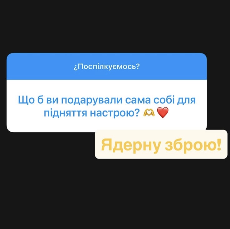 «Ядерну зброю!» — коротко відповіла співачка.